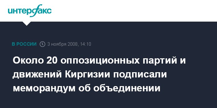 Часть киргизской оппозиции, называющая себя "прогрессивными силами общества", в понедельник подписала меморандум об объединении вокруг Концепции "Путь справедливости", предусматривающей смену системы государственного устройства республики и переход от президентской к парламентской форме правления.