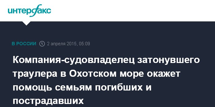 Компания-судовладелец затонувшего траулера в Охотском море окажет помощь семьям погибших и пострадавших