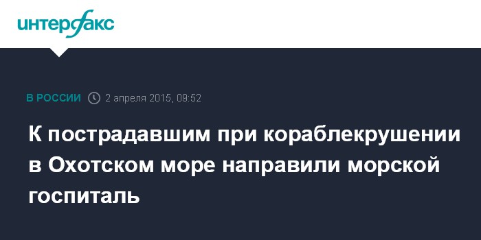 Москва. 2 апреля. INTERFAX.RU - Моряков, пострадавших при крушении в Охотском море большого автономного морозильного траулера (БАТМ) "Дальний Восток", могут доставить в морской госпиталь, сообщил "Интерфаксу" в четверг представитель ГУ МЧС России по региону.