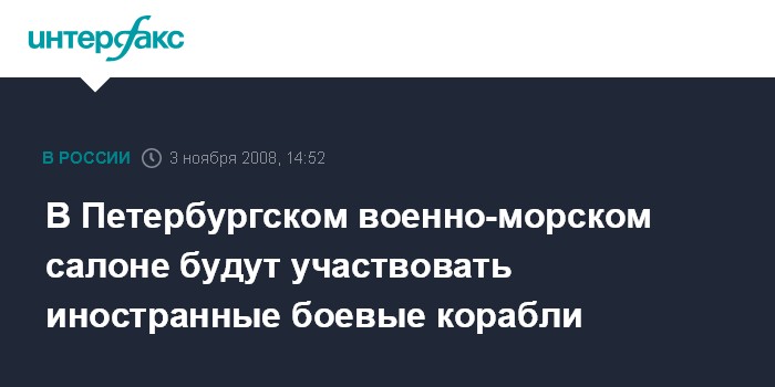Ле-Бурже. 3 ноября. INTERFAX.RU - Иностранные и российские военные корабли и подводные лодки примут участие в Международном военно-морском салоне, который пройдет в 2009 году в Санкт-Петербурге.