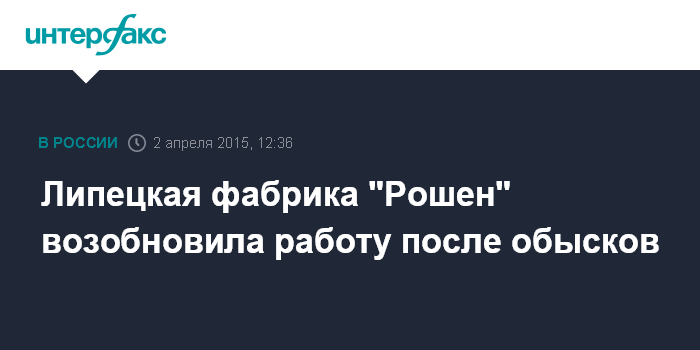 Москва. 2 апреля. INTERFAX.RU - На липецкой кондитерской фабрике "Рошен" возобновился производственный процесс, прерванный накануне в связи с обысками, сообщила в четверг "Интерфаксу" старший менеджер компании по связям с общественностью Ирина Вахонина.