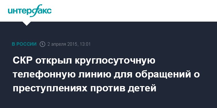 СКР открыл круглосуточную телефонную линию для обращений о преступлениях против детей