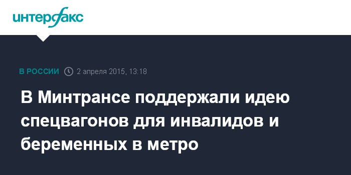 Москва. 2 апреля. INTERFAX.RU - В Минтрансе РФ поддерживают инициативу о выделении отдельных вагонов или их частей в составе поездов метрополитена для перевозок инвалидов, беременных, а также женщин с детьми, сообщил замглавы министерства Николай Асаул.
