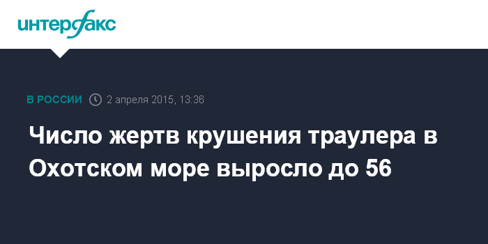 Число жертв крушения траулера в Охотском море выросло до 56