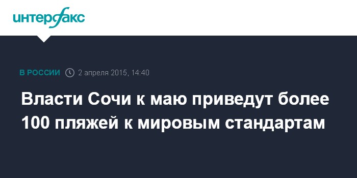 Москва. 2 апреля. INTERFAX.RU - Власти Сочи к началу летнего курортного сезона намерены привести к мировым стандартам 112 пляжей для отдыха и оздоровления горожан и гостей курорта.