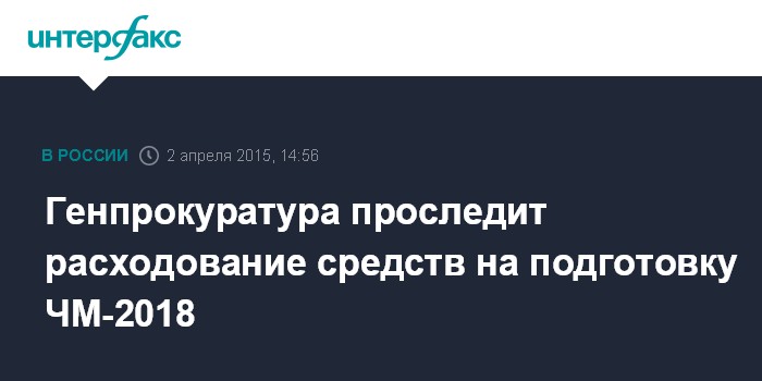 Москва. 2 апреля. INTERFAX.RU - Генеральная прокуратура РФ объявила о намерении строго следить за законностью расходования средств, выделенных на подготовку и проведение в 2018 году в России чемпионата мира по футболу.