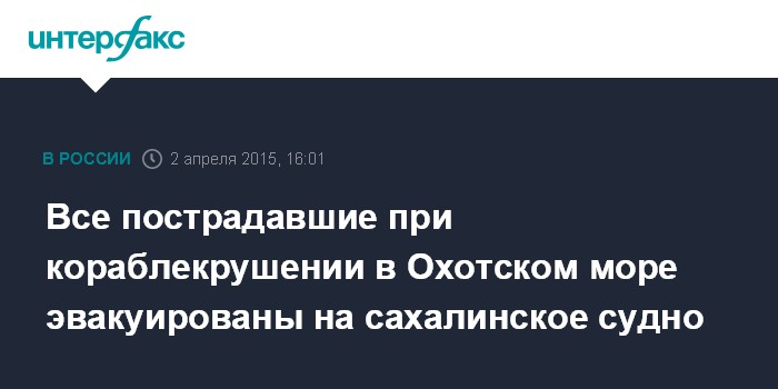 Все пострадавшие при кораблекрушении в Охотском море эвакуированы на сахалинское судно
