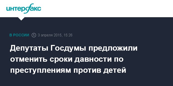 Главы двух парламентских комитетов - Елена Мизулина ("Справедливая Россия") и Ольга Баталина ("Единая Россия") предложили поправки в ч. 5 ст. 78 и ч. 4 ст. 83 УК РФ "в целях усиления защиты детей от преступлений сексуального характера".
