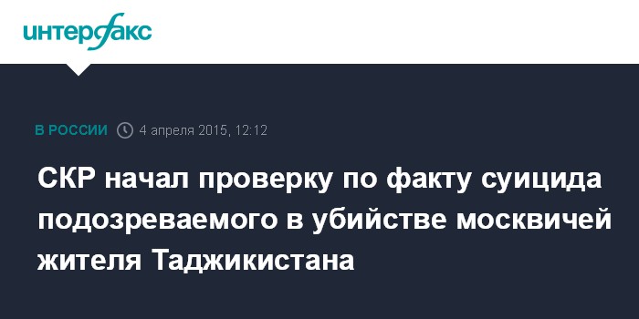 СКР начал проверку по факту суицида подозреваемого в убийстве москвичей жителя Таджикистана