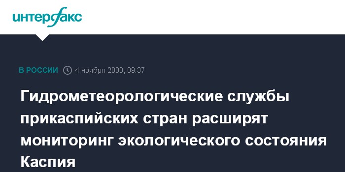 Алма-Ата. 4 ноября. ИНТЕРФАКС-КАЗАХСТАН - Гидрометеорологические службы пяти прикаспийских государств - Казахстана, России, Азербайджана, Ирана и Туркмении - планируют до конца года заключить соглашение, которое позволит расширить экологический мониторинг Каспийского моря.