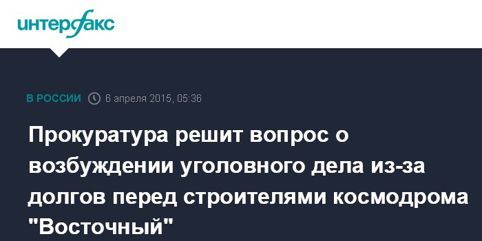 Прокуратура решит вопрос о возбуждении уголовного дела из-за долгов перед строителями космодрома "Восточный"