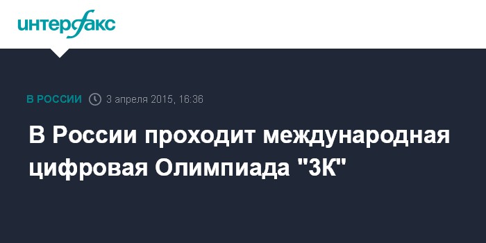Москва. 3 апреля. INTERFAX.RU - С января по июнь 2015 года в России проходит международная студенческая олимпиада "3К" по научно-техническим и естественным дисциплинам. Интеллектуальное соревнование проводится в цифровом формате и охватывает многотысячную студенческую аудиторию по всей России и за ее пределами.