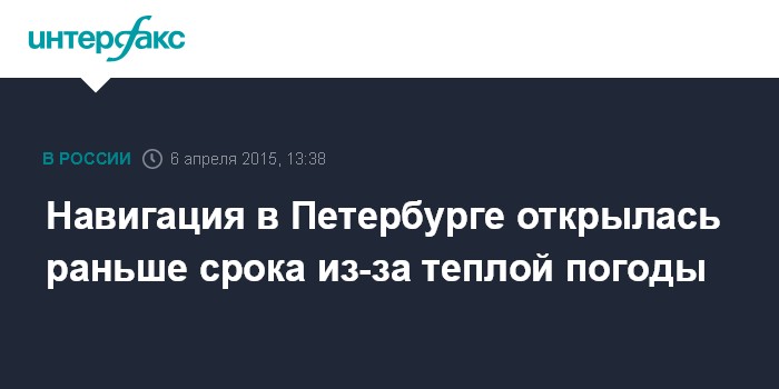 В соответствии с приказом ФБУ "Администрация Волго-Балтийского бассейна внутренних водных путей", навигация открылась на участках Невы от Благовещенского моста до Большого Обуховского моста и Малой Невы - от истока до Тучкова моста.