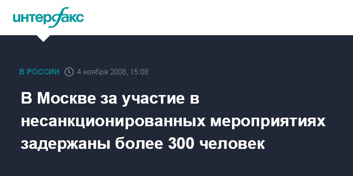Москва. 4 ноября. INTERFAX.RU - Московская милиция, по данным на 15:00, задержала более 300 человек за нарушение правил проведения митингов, шествий и других массовых мероприятий в городе, сообщил "Интерфаксу" во вторник первый заместитель пресс-секретаря мэра столицы Леонид Крутаков. "Обстановка в городе нормальная. Движение в столице нигде не перекрывалось", - сказал он.