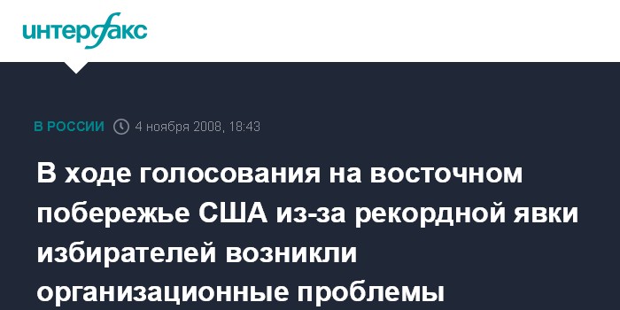 Москва. 4 ноября. INTERFAX.RU - В ходе голосования на президентских выборах в США на восточном побережье страны возникли некоторые проблемы с организацией.
