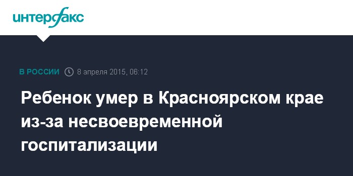 Ребенок умер в Красноярском крае из-за несвоевременной госпитализации