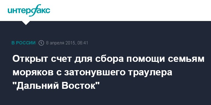 Открыт счет для сбора помощи семьям моряков с затонувшего траулера "Дальний Восток"