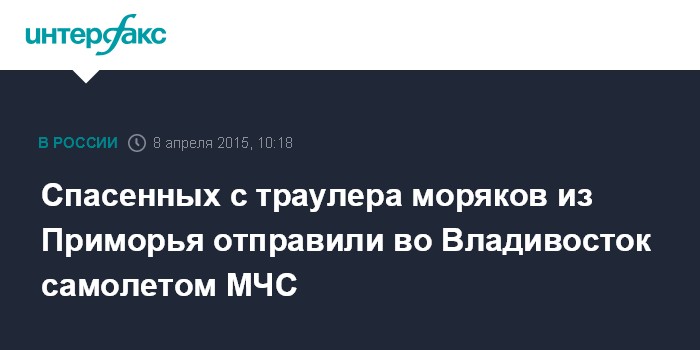Москва. 8 апреля. INTERFAX.RU - Самолет МЧС доставит из Южно-Сахалинска во Владивосток моряков - жителей Приморского края, спасенных с затонувшего траулера "Дальний Восток", и родственников членов экипажа, сообщает пресс-служба ГУ МЧС региона.