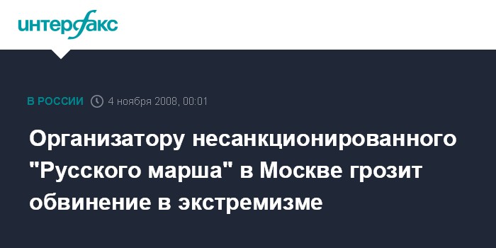 Организатору несанкционированного "Русского марша" в Москве грозит обвинение в экстремизме