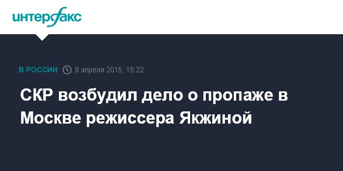 Москва. 8 апреля. INTERFAX.RU - Возбуждено уголовное дело по факту исчезновения режиссера-документалиста Тамары Якжиной, сообщает пресс-служба СКР.