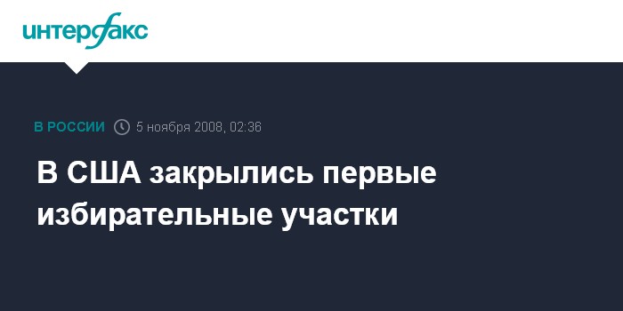 Москва. 5 ноября. INTERFAX.RU - Первые избирательные участки в США, на которых проходило голосование в рамках президентских выборов, закрылись в штатах Индиана и Кентукки, сообщает в среду агентство ЭФЭ. Начался подсчет голосов.