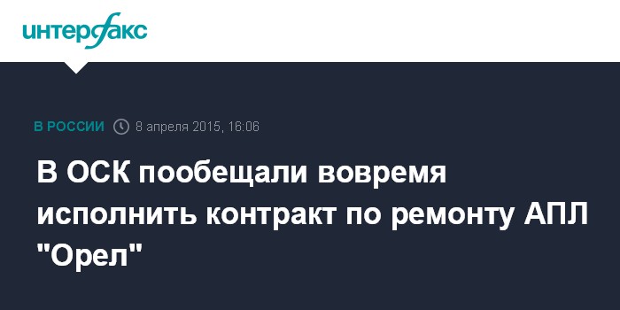 "Руководство "Звездочки" (судостроительный завод в Северодвинске - ИФ) проинформировало министерство обороны о том, что государственный контракт на ремонт АПЛ "Орел" будет исполняться в соответствии с контрактными сроками", - говорится в сообщении пресс-службы ОСК, которое поступило в "Интерфакс" в среду.