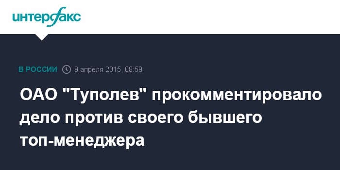 ОАО "Туполев" прокомментировало дело против своего бывшего топ-менеджера