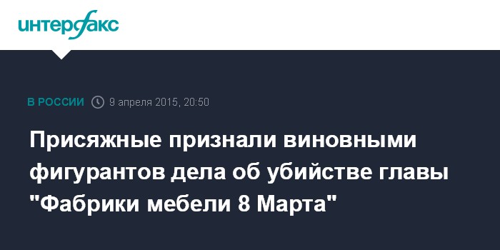Москва. 9 апреля. INTERFAX.RU - Коллегия присяжных вынесла обвинительный вердикт по уголовному делу об убийстве руководителя группы компаний "Фабрика мебели 8 Марта" Михаила Кравченко.