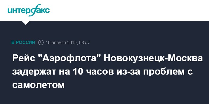 Москва. 10 апреля. INTERFAX.RU - Вылет рейса Новокузнецк-Москва задерживается ориентировочно на 10 часов из-за срабатывания сигнализации о неисправности на воздушном судне, сообщает Западно-Сибирская транспортная прокуратура.