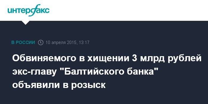 Обвиняемого в хищении 3 млрд рублей экс-главу "Балтийского банка" объявили в розыск