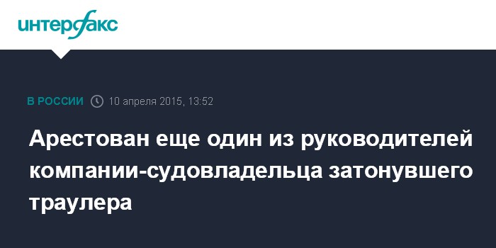 Арестован еще один из руководителей компании-судовладельца затонувшего траулера