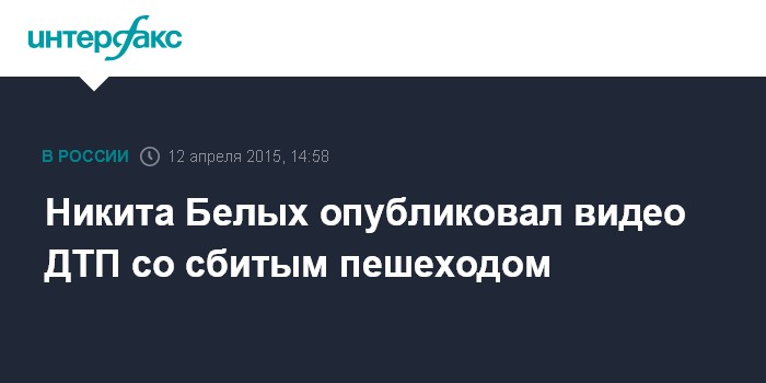 Москва. 12 апреля. INTERFAX.RU - Губернатор Кировской области Никита Белых, чей автомобиль накануне сбил пешехода, выложил в своем блоге ссылку на запись видеорегистратора с места происшествия.