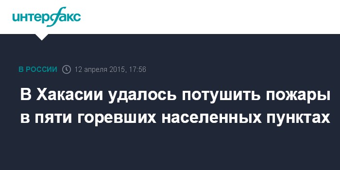 Москва. 12 апреля. INTERFAX.RU - МЧС России удалось потушить пожары в пяти населенных пунктах Хакасии и восьми - локализовать, заявил замглавы МЧС Александр Чуприян.