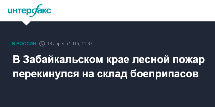 Москва. 13 апреля. INTERFAX.RU - Лесной пожар в понедельник перекинулся на хранилище боеприпасов в поселке Лесной городок в Забайкальском крае, сообщили агентству "Интерфакс" в администрации поселения.