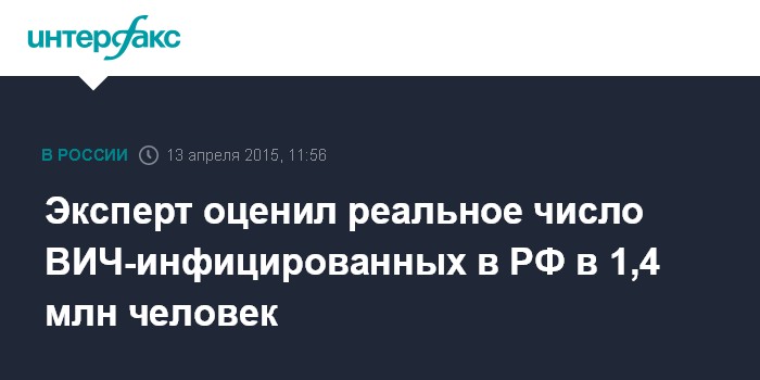 "Официально с диагнозом ВИЧ в России живут чуть больше 700 тыс. человек. Мы обследуем в год примерно 15% населения России. За прошлый год мы сделали около 25 миллионов тестов, выявили около 85 тыс. новых случаев. А сколько случаев среди остальных 85% населения? Предполагаем, что их примерно столько же, сколько уже зарегистрировано - еще до 700 тыс.", - заявил Покровский.