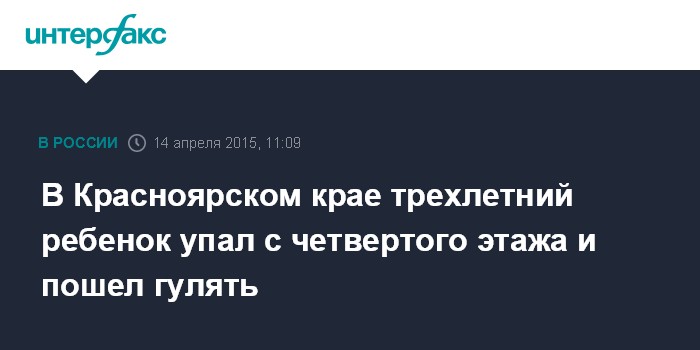 В Красноярском крае трехлетний ребенок упал с четвертого этажа и пошел гулять