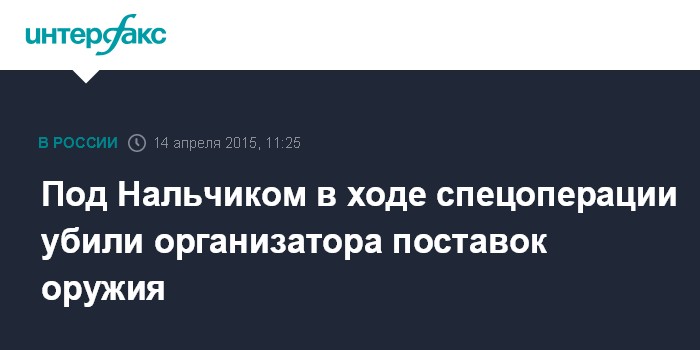 Москва. 14 апреля. INTERFAX.RU - В ходе контртеррористической операции в садоводческом товариществе "Домостроитель" возле Нальчика убит организатор поставки оружия в республику, сообщает во вторник информационный центр Национального антитеррористического комитета.