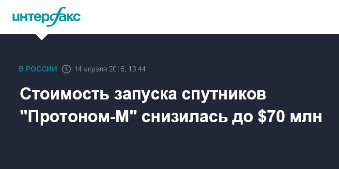 Стоимость запуска спутников "Протоном-М" снизилась до $70 млн