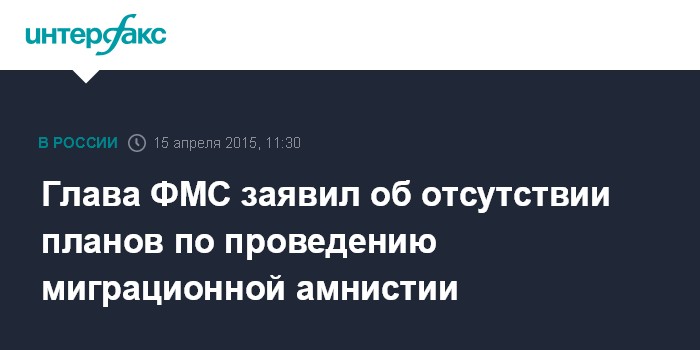 Если уж проводить амнистию, то летом, либо осенью, когда "схлынет основной объем и когда станет поспокойнее", отметил глава ФМС, еще раз подчеркнув, что никаких планов проведения амнистии для мигрантов-нарушителей нет .
