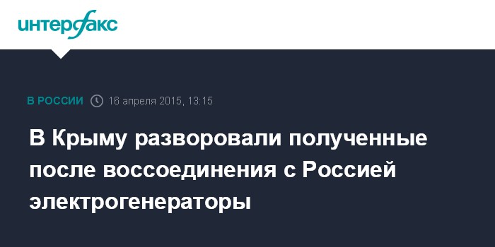 Москва. 16 апреля. INTERFAX.RU - Часть мобильных электрогенераторов, переданных в пользование правительства Крыма после вхождения региона в состав России, были украдены или использовались не по назначению, сообщил глава республики Сергей Аксенов.