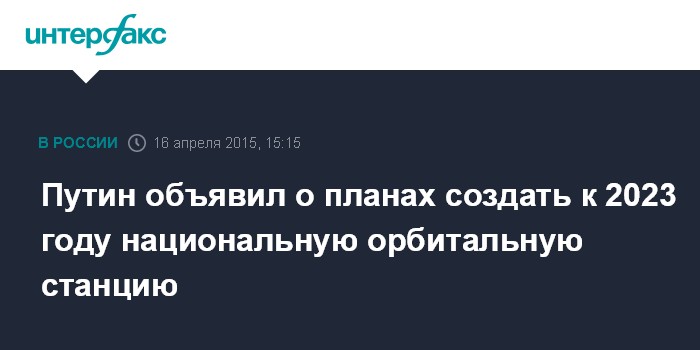 Москва. 16 апреля. INTERFAX.RU - Президент Владимир Путин заявил о планах России создать собственную орбитальную космическую станцию к 2023 году.