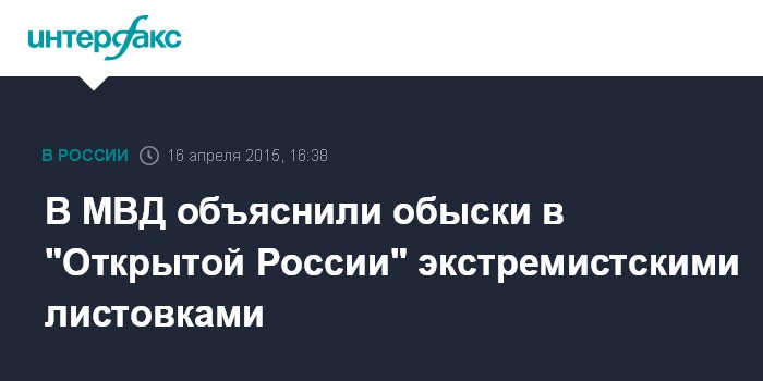 В МВД объяснили обыски в "Открытой России" экстремистскими листовками