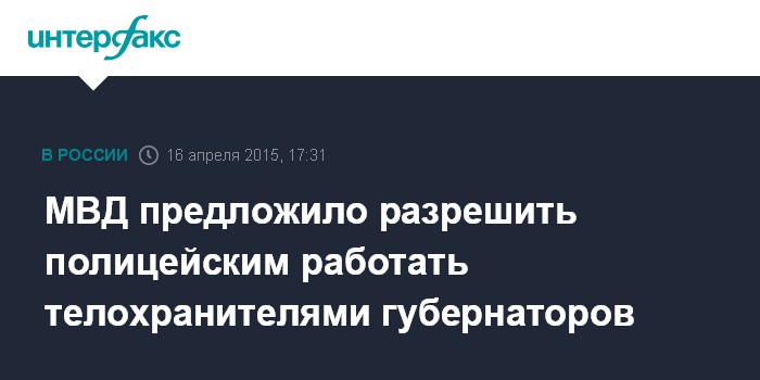 Москва. 16 апреля. INTERFAX.RU - МВД РФ подготовило поправки в закон "О полиции", позволяющий сотрудникам на договорной основе охранять ряд губернаторов, глав госкорпораций и стратегических предприятий. Cоответствующий документ в четверг размещен на портале regulation.gov.ru.