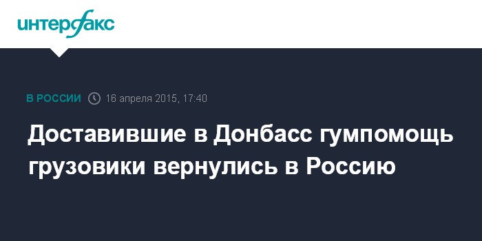 Доставившие в Донбасс гумпомощь грузовики вернулись в Россию