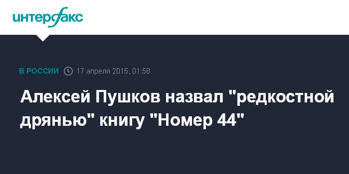 Алексей Пушков назвал "редкостной дрянью" книгу "Номер 44"