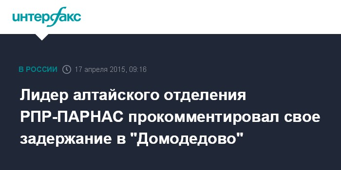 Москва. 17 апреля. INTERFAX.RU - Сопредседателя регионального отделения партии РПР-ПАРНАС в Республике Алтай Сергей Михайлов прокомментировал вчерашнее задержание в аэропорту"Домодедово" в Москве.