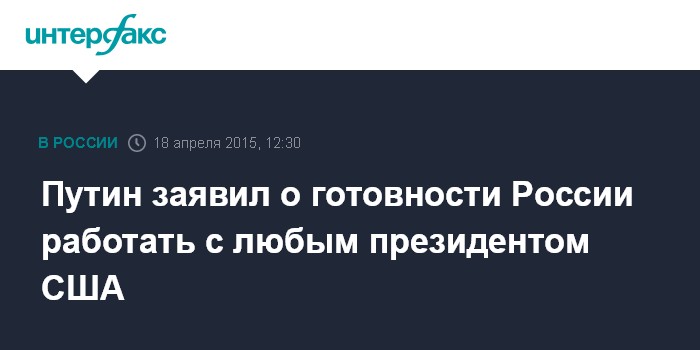 Москва. 18 апреля. INTERFAX.RU - Москва готова работать с любым президентом, которого изберет американский народ, потому что у России и США, несмотря на имеющиеся разногласия, есть общая повестка дня, заявил президент РФ Владимир Путин.