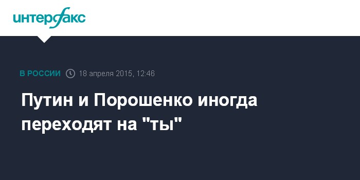 Москва. 18 апреля. INTERFAX.RU - Президент России Владимир Путин признался, что иногда в общении с президентом Украины Петром Порошенко они переходят на "ты".