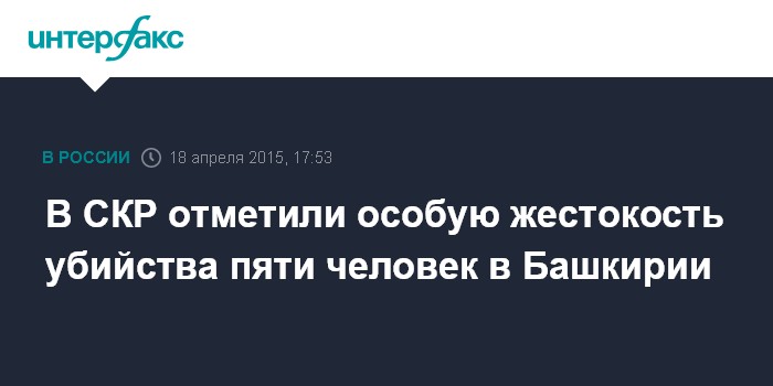 Москва. 18 апреля. INTERFAX.RU - В ходе расследования убийства пяти человек в башкирском городе Кумертау установлены причины смерти потерпевших, сообщает Следственный комитет РФ в субботу.