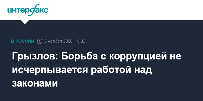 Москва.5 ноября. INTERFAX.RU - Спикер Госдумы, председатель Высшего совета партии "Единая Россия" Борис Грызлов заявил, что принятие законов, направленных на борьбу с коррупцией, станет важным этапом наступления общества на это негативное явление.
